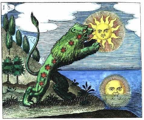 Il primo di questi cuori proviene dal folklore, dall’astrologia, dalla medicina simbolica, dalla fisiognomica. Il cuore del leone è come il sole: rotondo, pieno e integro; i suoi classici simboli sono l’oro, il re, il rosso, il sol, lo zolfo, il calore. È il cuore che arde al centro del nostro essere e s’irradia all’esterno, magnanimo, paterno, incoraggiante. Ticino diceva che la natura del cuore è calda e secca, e che il calore è ciò che meglio si accorda con l’universo. Il pensiero del leone è così appassionato della vita, così in armonia con il mondo, da essere un pensiero dotato di volontà; nel mondo si manifesta assiso in trono come un re, giallo come la luce del giorno, possente come un ruggito, fisso come il dogma. Il pensiero si presenta come volizione, come umore, oppure come amore, vitalità, potenza, o ancora come immaginazione; e non riconosce se stesso come pensiero, perché non è raziocinio riflessivo, astratto dalla vita, introspettivo.